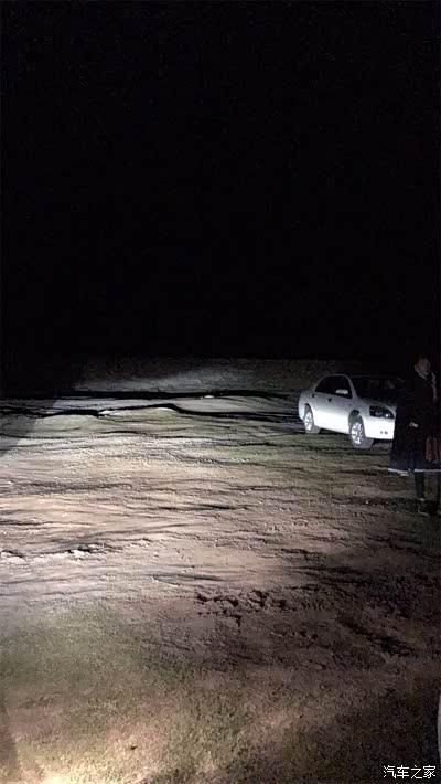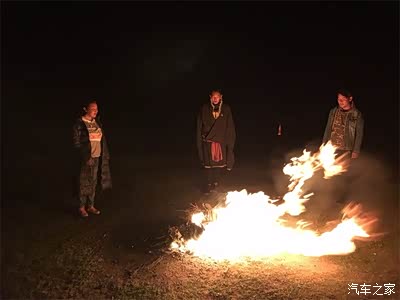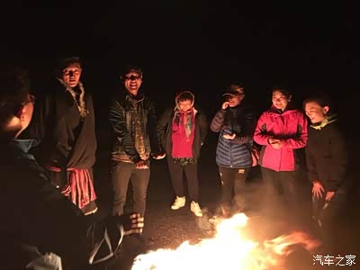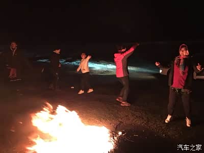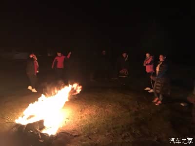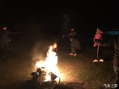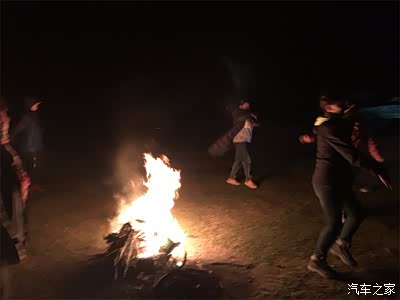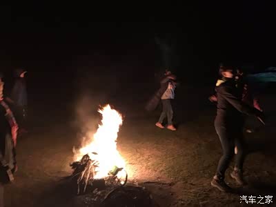 晚上我们准备开始篝火晚会,这里晚上真是黑啊。打开车灯