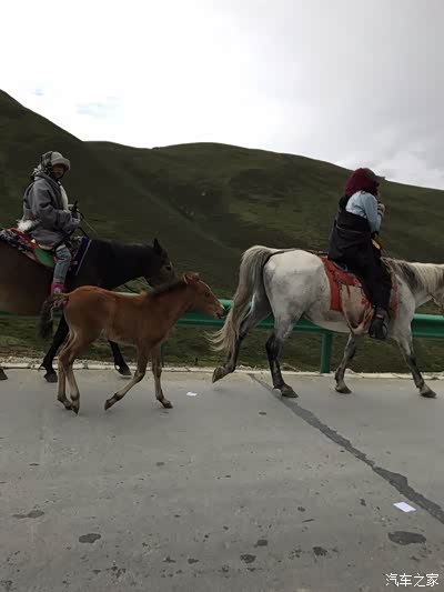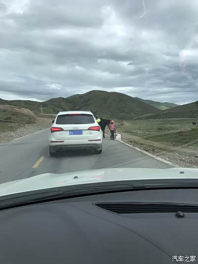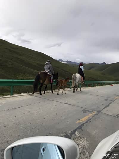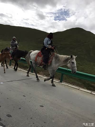 路上看到牧民骑马在公路上