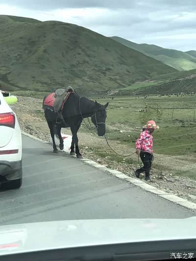 在路边遇到个孩子牵着马匹穿过公路