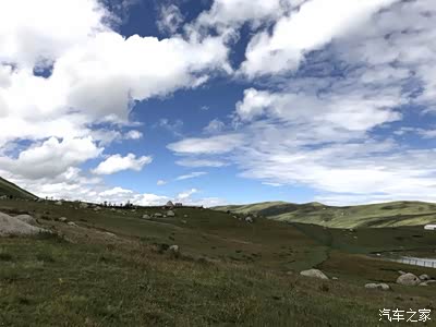 远处青山,草场,白云。心旷神怡