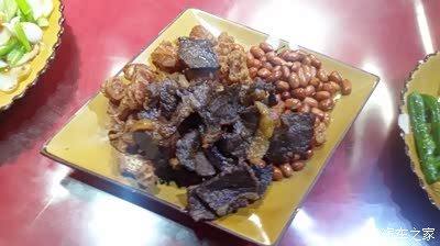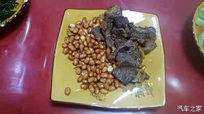 牛肉干巴+油炸花生米+猪小肠拼盘。