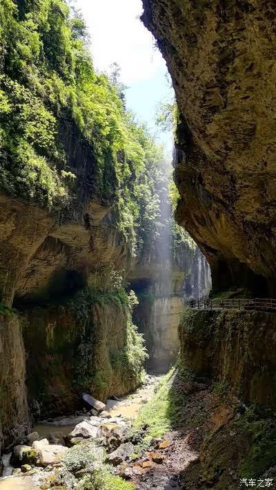 即将进入玄鹿地缝:形成于2.5亿年前的三叠纪喀斯特地貌,行走的地缝之腰是以前河床,由于地质运动形成了我们现在看到的是景象。玄鹿者,二千岁神鹿,深藏地缝。战时,以鹿角御之;祸时,以***度之。