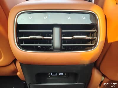 后排通风口处也有细节,后排空调出风口上方是后排左右座椅,通风加热按键,后排人员可以根据个人情况进行调整。