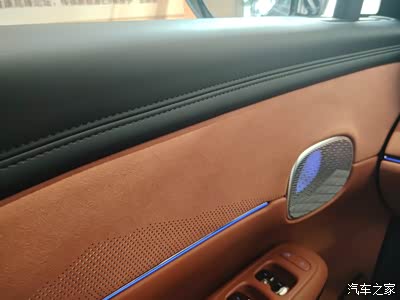 车内内饰用的是超柔水润皮、NAPPA 真皮以及高级麂皮等高档材质进行包覆,常用接触地方为软性材质,摸起来的手感细腻,豪华感十足。车内提供了棕色、白色、黑色三款内饰配色供消费者选择。我个人觉得棕色更显高级豪华。