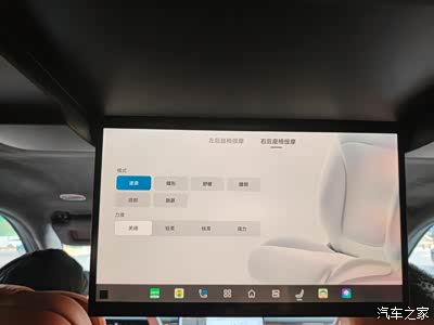 同时,因为全车座椅都有按摩功能,在后排娱乐屏上也有操作后排座椅的按摩模式,总共有6种按摩模式和三种按摩强度。