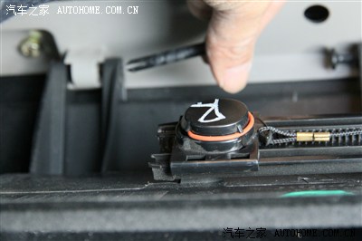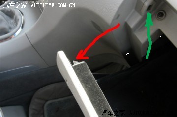 看见红色的卡销了哇,可以按进去。连续按动就有类似中控异响的声音。绿色的就是卡槽,卡销的家。。。。。。是不是真凶暂且不表。
