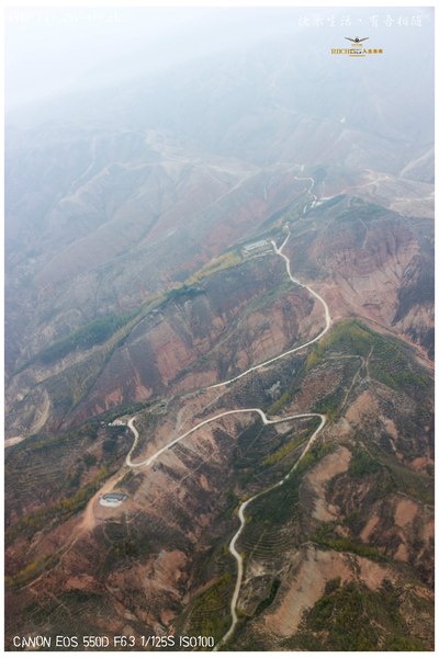 ↓:临近西宁时航拍的山路