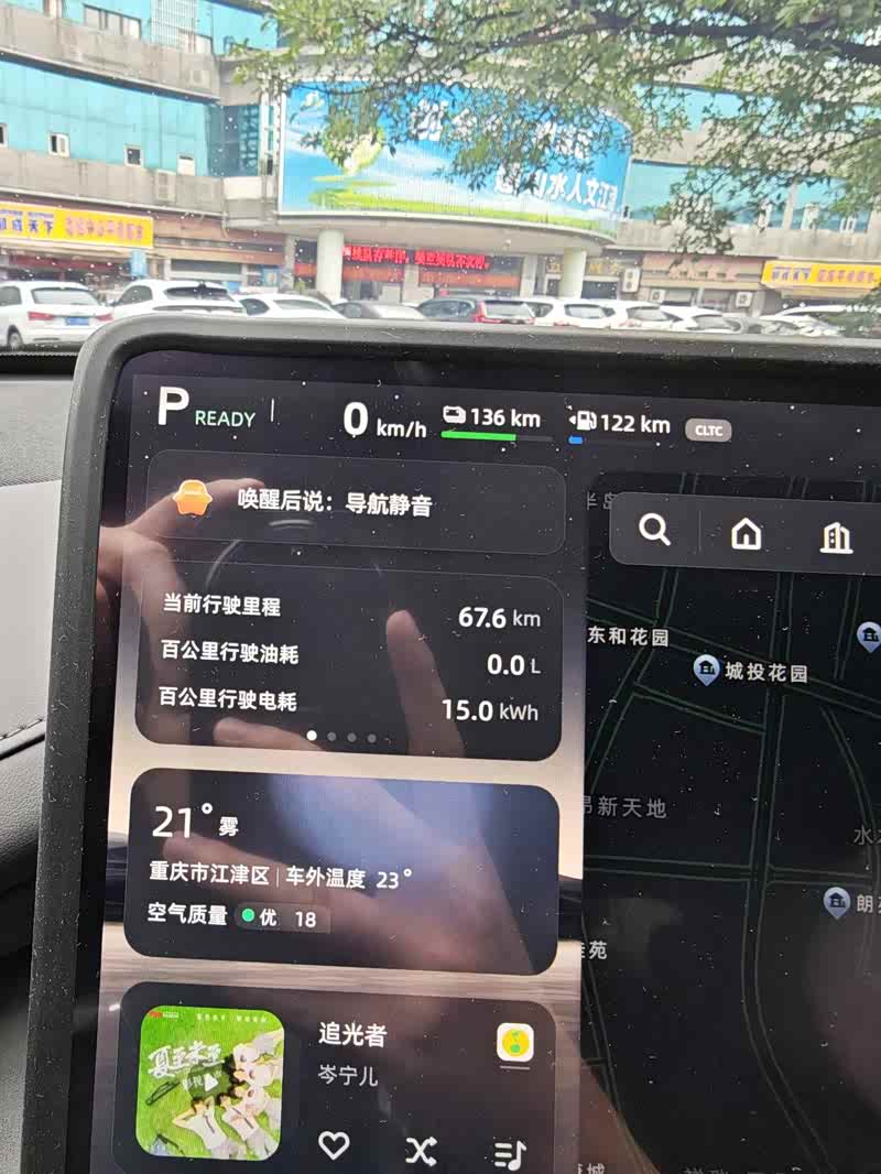 正好五月底从重庆主城渝北区充满电后跑到江津区,我们一家三口再加上孩子外公外婆整车五人,全程开空调,到达目的地后里程小计加上剩余里程一共200公里,是一个非常不错的续航达成率了。
