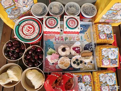 再配上车厘子和榴莲水果,配上小蛋糕,再给娃娃们点上汉堡,薯片,可乐,娃娃们开心的起飞。