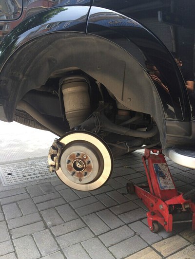 这个车自带的千斤顶真的顶的累,第一次自己换备胎时,由于顶的位置找错,差点顶破那个挡板,要顶在大梁上,而且刚好有个小孔,跟自带的千斤顶卡住了再顶,希望各位都用不到。而且轮胎太重,蹲着一个人抬轮胎卡位置时真的是累