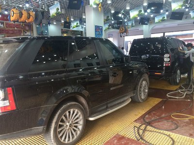 期间在外地的一个朋友回来一起吃饭,说起车的事,他说路虎性价比最好的就是发现4,我现在就是开这款车,而且有7个座位,说了很多很多,男人好像说起车子和女人总是源源不绝~~~~~~~~这土豪换车跟换女人一样快。我家乡人口不足百万,但要是说起车,我们这还真不马虎,上到布加迪,下到~~~~~,07年认识他时是X5,换揽胜,换卡宴,到现在换了13款的发现柴油。末了来一句,听我的没错。隔天就问他要了车跑出去嘚瑟了一番,就是这feeling,倍儿爽。之后就剩下X5和发现,思前想后,最后下定决心要路虎发现,无外乎他的车头是我喜欢的,而且她没X5这样街车。去了隔壁市的4S店,去了杭州建国路的路虎捷豹店,无非就是价格问题,都是加价几万几万,或者没车。最后朋友上班的经销商处订了2014款的路虎发现四柴油版外黑内黑,加价2万配置(脚踏,冰箱,七座)。然后就是等车,等车的心情只有等过的人才懂,我词穷,表达不了,因为我的是省内调货过来,其实也就是等2天的时间,但是这所谓的48小时,你懂的。。。。。。4月28日下午5点总算开上了,哈哈哈