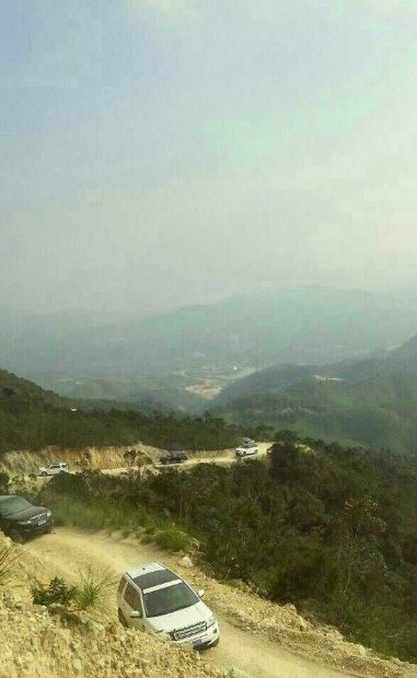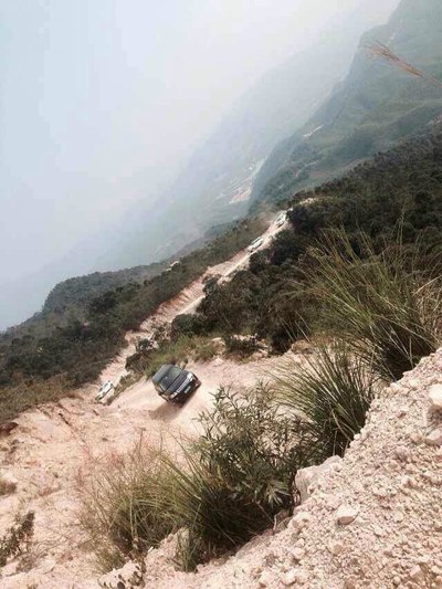 飞人在空中拍的车队上山照片