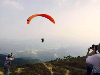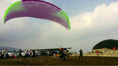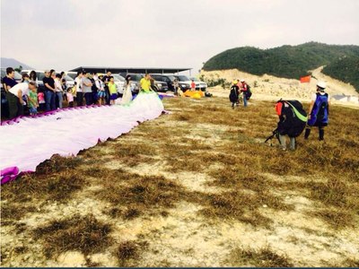 第一组滑翔伞体验者准备,大家后退,有人要开始装B飞了……