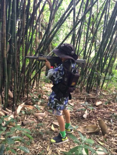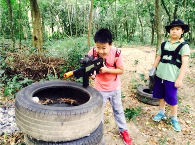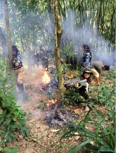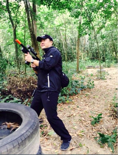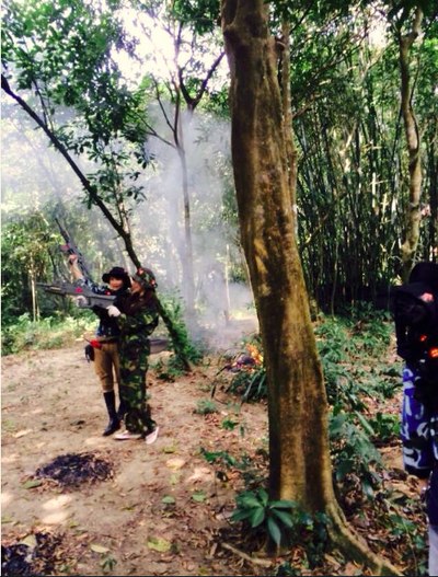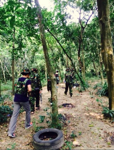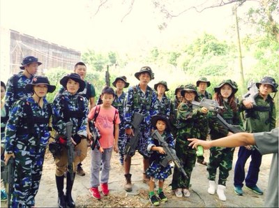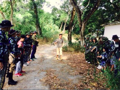 因时间限制,第一天下午只有10个人可以体验滑翔伞,其它人干嘛呢?集合下山玩真人CS,这个队伍不太好带啊