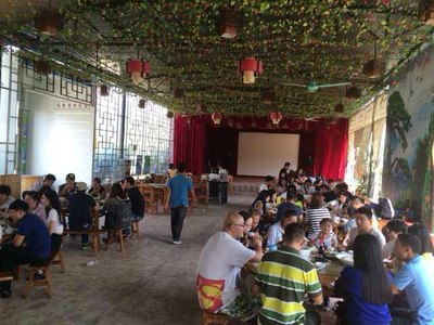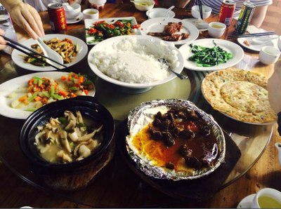 提前订好的午餐,8桌一字排开,当然窑鸡必不可少,没来得及细细品味,三下五除二吃完,不过午餐除了窑鸡其它菜一般,好多人说没吃饱;
