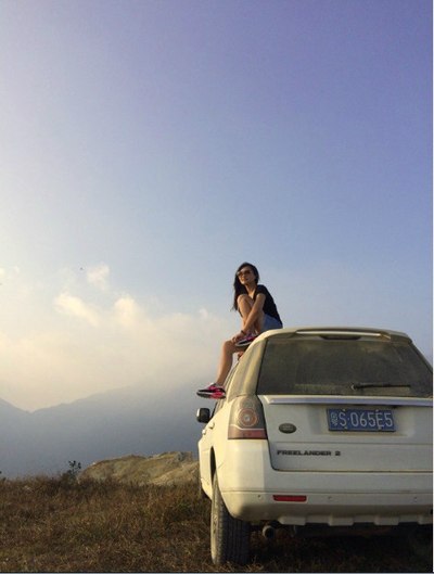 姑娘,你坐车顶干嘛?能把你QQ、微信、手机通通告诉我号码吗?