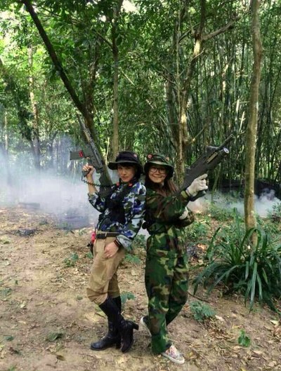 冲锋姐妹花,右边美女高喊:大家不要射我,我出来给你们拍照,然后就挂了......