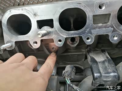 首先在拆的时候应该观察整体发动机步骤 找出油轨 喷油嘴所在之处 这里呢 就不用找了 就在进气管下