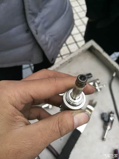 既然都拆了 还是好好的,清洁一下 拆进气管很简单 就你能看见的那几颗螺丝 外加两颗螺帽 就OK了 最好先把节气门与之分开 拆完后 就可以很明显看见进气气门 这些了 对 主要是喷油嘴 喷油嘴以看得见的螺丝拧下来 就可以 随后取出油轨 取下喷油嘴 我们来看看喷油嘴到底脏不脏