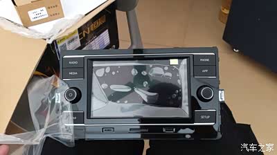 这是卖家给我挑选的一个精品,屏幕膜和机器膜都有,所以我说尽量跟卖大批量的卖家卖,质量相对来说更加有保障点。(左右两个金属耳朵是给大众车用的,切割之~还有"CAR" & “SETUP” 两个按钮侧面的边