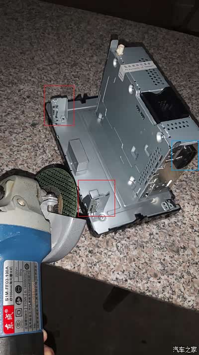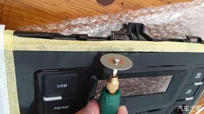 定位没问题了之后就用手工打磨机慢慢切。这里分享个细节吧,打磨机一般功率小,这种面板很厚,建议是打磨机开槽再去五金店买5毛的锯条,开槽后切开其中的两三厘米,开槽和手工切割相结合,提高效率。