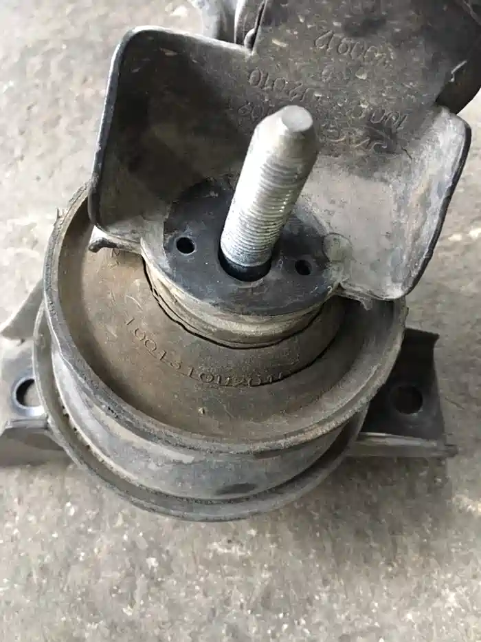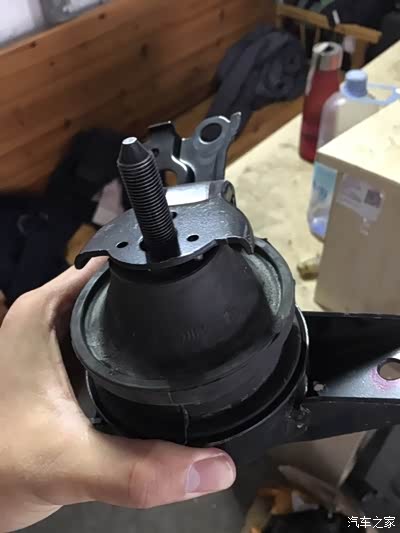 旧原装右机脚,有裂纹了,难怪发动机这么吵,方向盘那么震