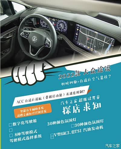2022款大众途锐主要针对配置进行了大幅度的调整,要了解详情需要先看一下车型的配置情况。