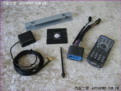 附件,GPS接收器带有增强接收效果的反射铝板,还有遥控器,挺实用,手写笔做工很不错。灰色的铁条在安装时要用到。还有一根倒车影像输入线(照片没拍)以外,没有附带音视频输入和输出线缆,如有需要还要另外购买,一条就要25元,不太厚道!