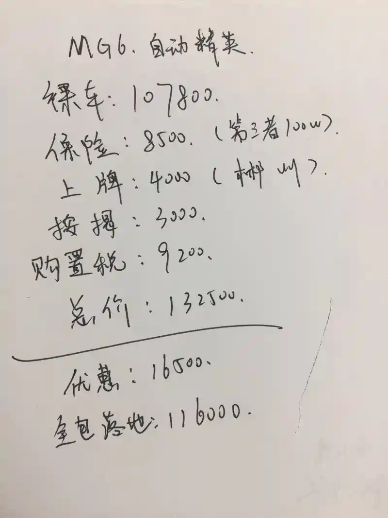 参考我给的价格 4S报总价11W6一般般,自精10月正常落地都是11W5左右。