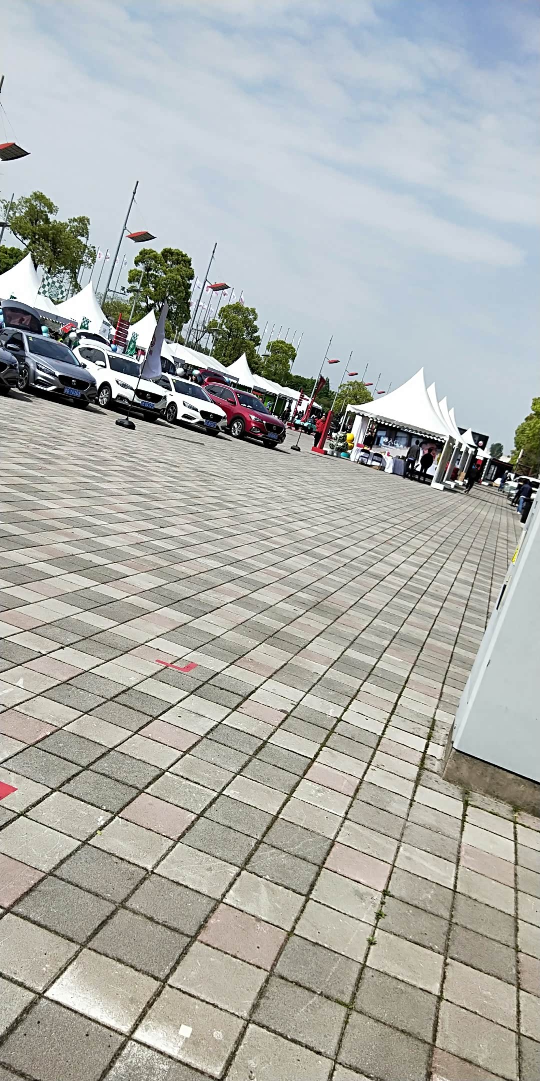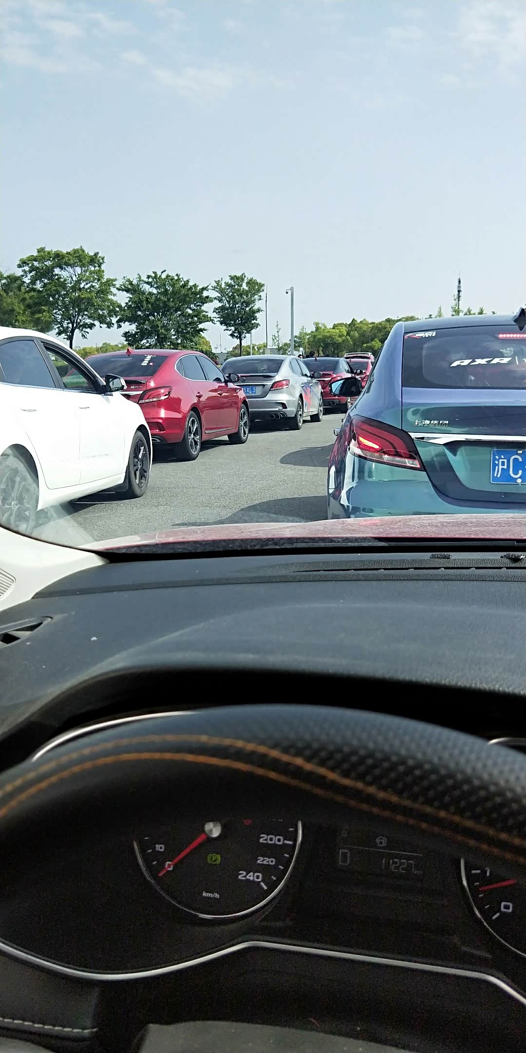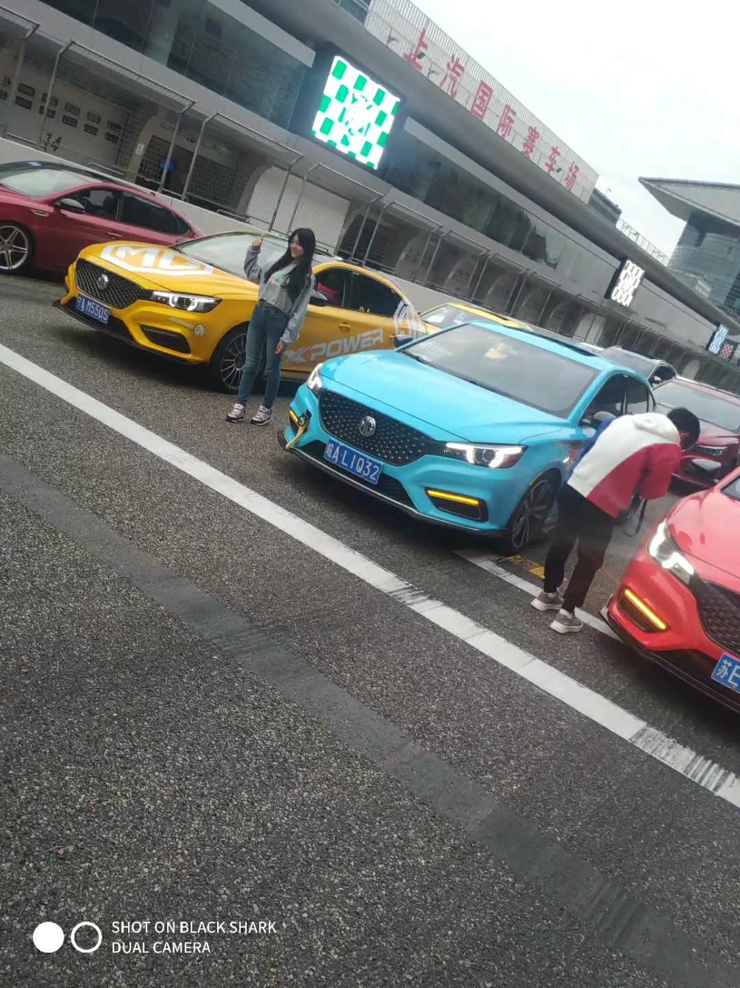 在上海国际赛车场排队进入 里面工作人员再给我安排车位