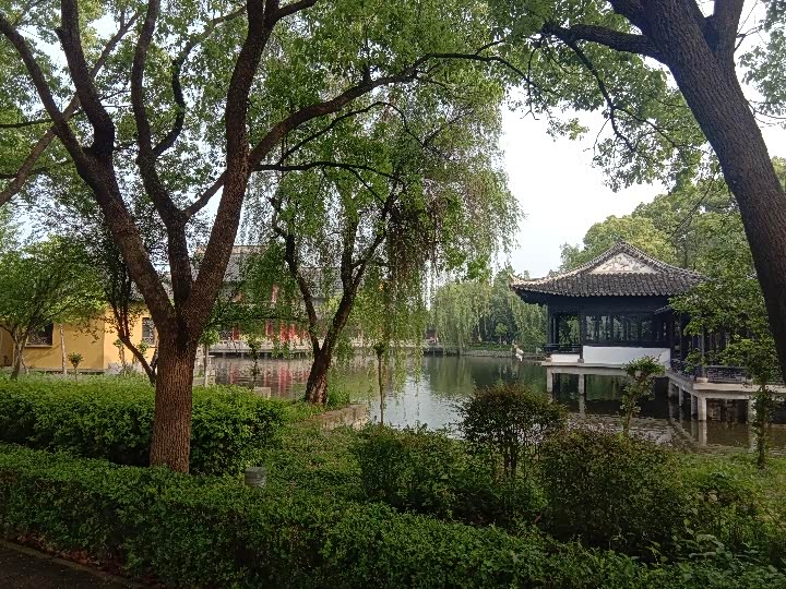 寺庙后面,厅堂、亭榭、轩祠、假山融为一体坐落在碧波湖上,真的好美呀!