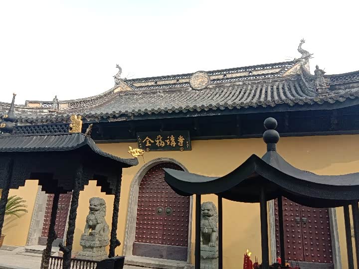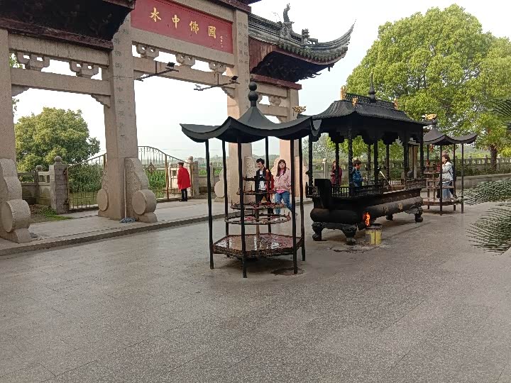 我们来到这南湖边上的一座寺庙,大老远就看到门口那块牌匾“水中佛国”。