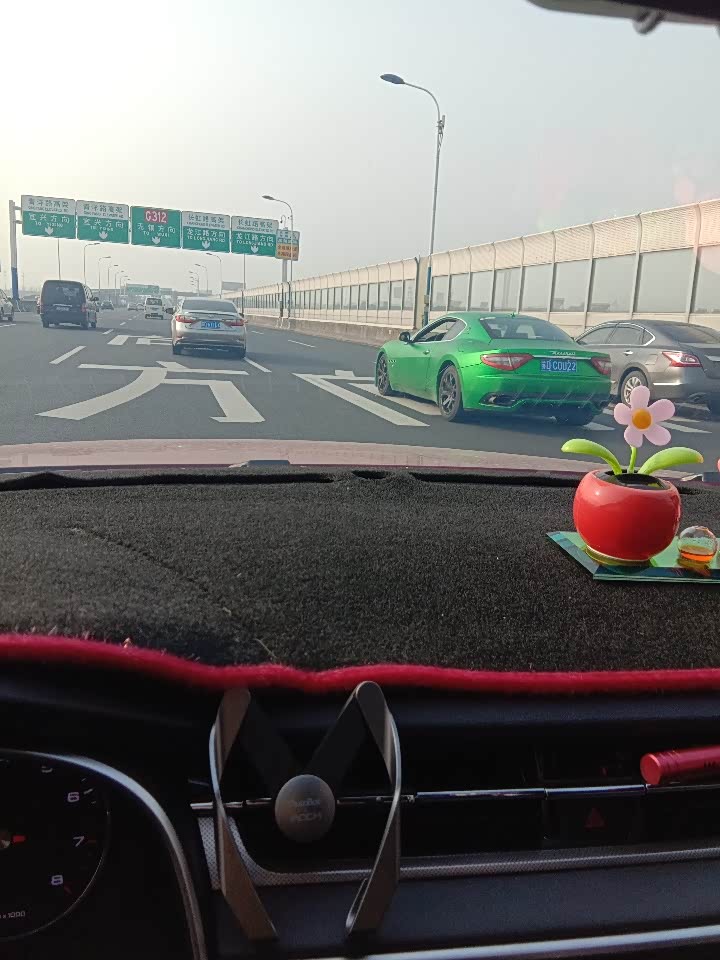 终于到家了,路上遇到骚绿玛莎拉蒂,回家的感觉真好,出去一天还有点想家了呢。