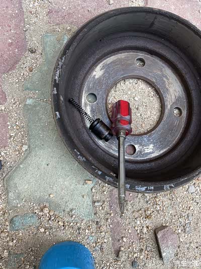 分泵内部照样用化油器清洗剂清洗,这过程中刹车油淌了一地,刹车系统已进入空气,所以恢复后切记排空气,第一个轮没经验没放气就装上轮胎了,刹车直接失效后来又二次把轮胎卸下,刹车分泵拆解,彻底清洗及刹车排气。