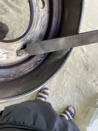 刹车盆磨出坎了,用锉摆平。