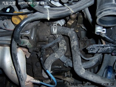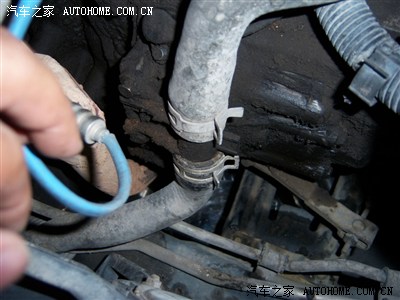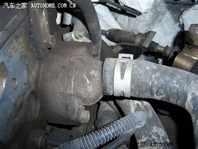 取下固定水箱的螺丝后需要取下 水箱与发动机连接的导水管 这是其中一条的位置