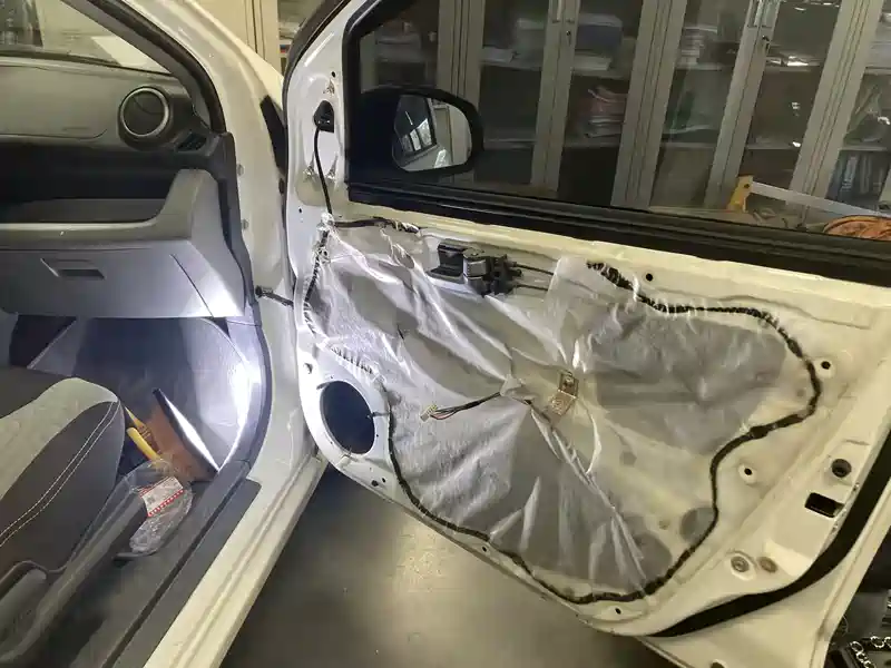 拆掉车门限位器上3个螺丝,伸手从喇叭口处抽出。同理,新的从喇叭处放进去,然后上螺丝,完成!!