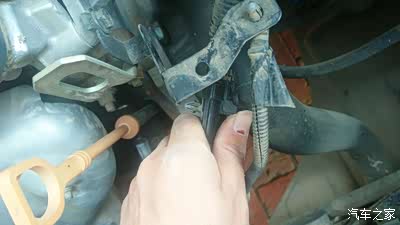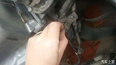 取下以后就是这样的,然后顺着大拇指的方向轻推塑料卡子,再抓住另一端一拉,插头就下来了。为什么要拆掉氧传感器插头呢