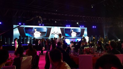 整个会场安排有序,非常漂亮。也是兰红撞色啊,哈哈!