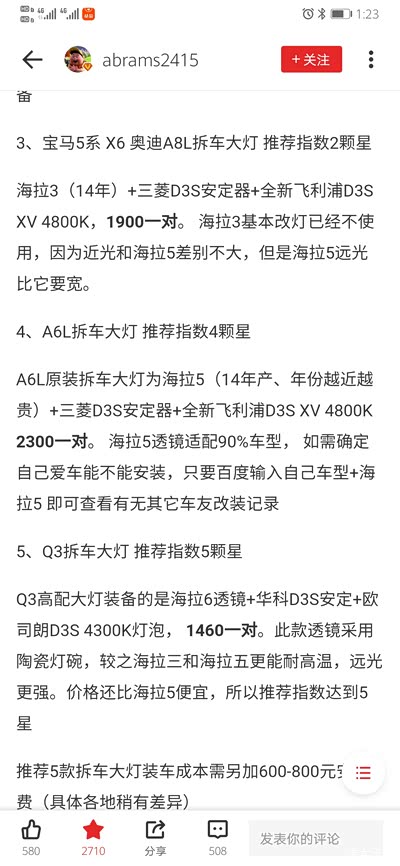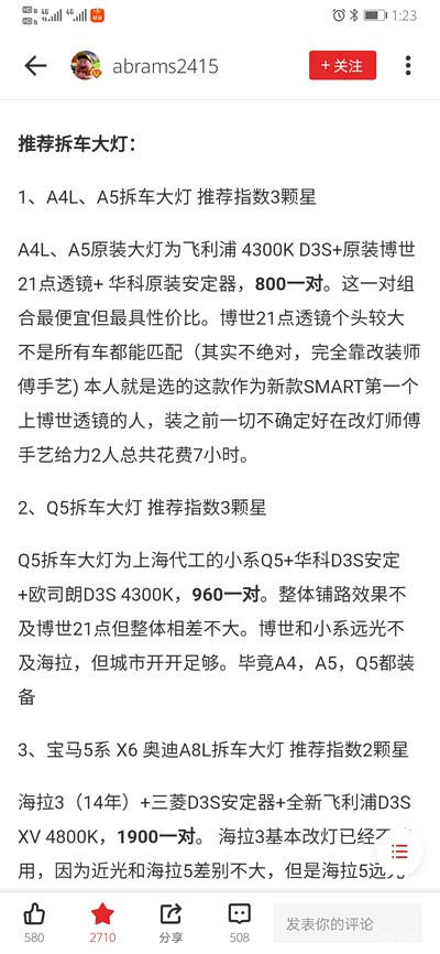 最后在淘宝上找到了同城卖家,给出的方案是14拆车海拉5+汗雷6500k+奥兹母安定