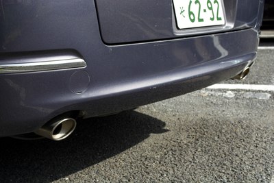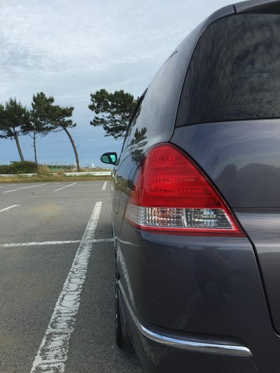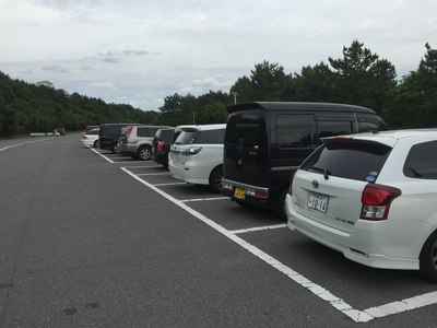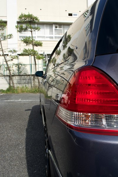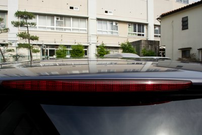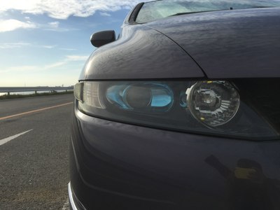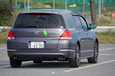 大奥的前脸。发动机盖上那个叶子标志是拿到驾照未满一年的初学者标志。虽然不好看,但是初学者被警察蜀黍发现没贴之后会被扣分+罚款 汗。拍摄地点是位于千叶市美滨区的幕张海滨公园。天气不好。有位妹子入镜。
