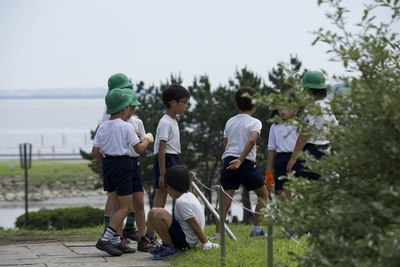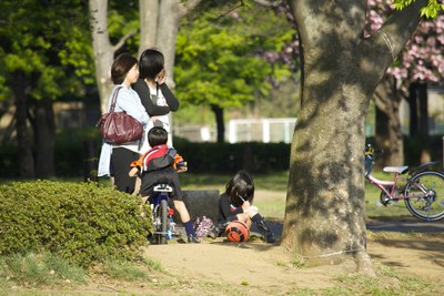 陪孩子逛公园的日本妈妈们。