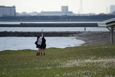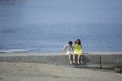 伊豆海边的情侣。