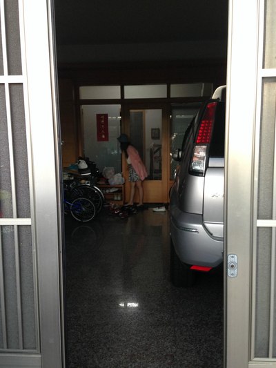 台湾的朋友家。家里2辆车 屋里停一辆屋外停一辆。