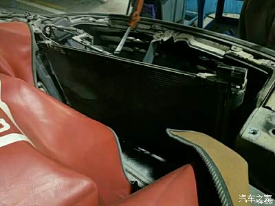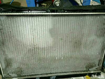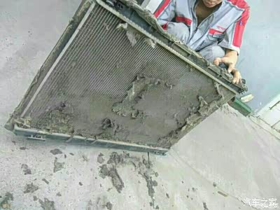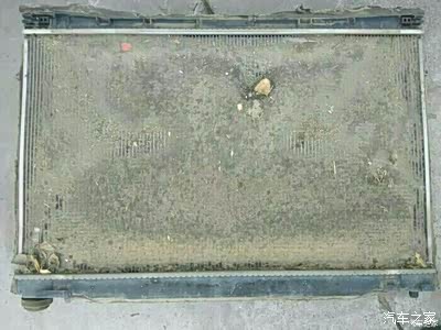 冷凝器后面的水箱已经被柳棉和浮土给填满了,能造成这样的原因有很多种,这辆车看情况应该是头两天下雨过积水路面导致杂质吸附在了水箱与冷凝器之间,从而导致了车辆高温,空调不凉等症状。