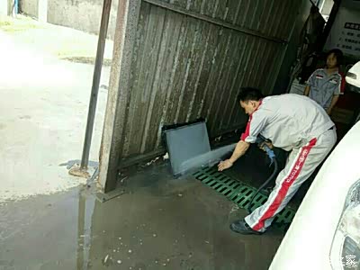清洗水箱的最关键一步,使用水枪把水箱清洗干净。