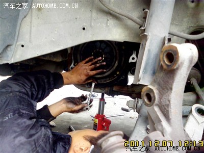 师傅钻进车底把入档杆啊链接螺丝,机脚胶上的螺丝,等等都下掉,很快就露出离合片的庐山真面目了。