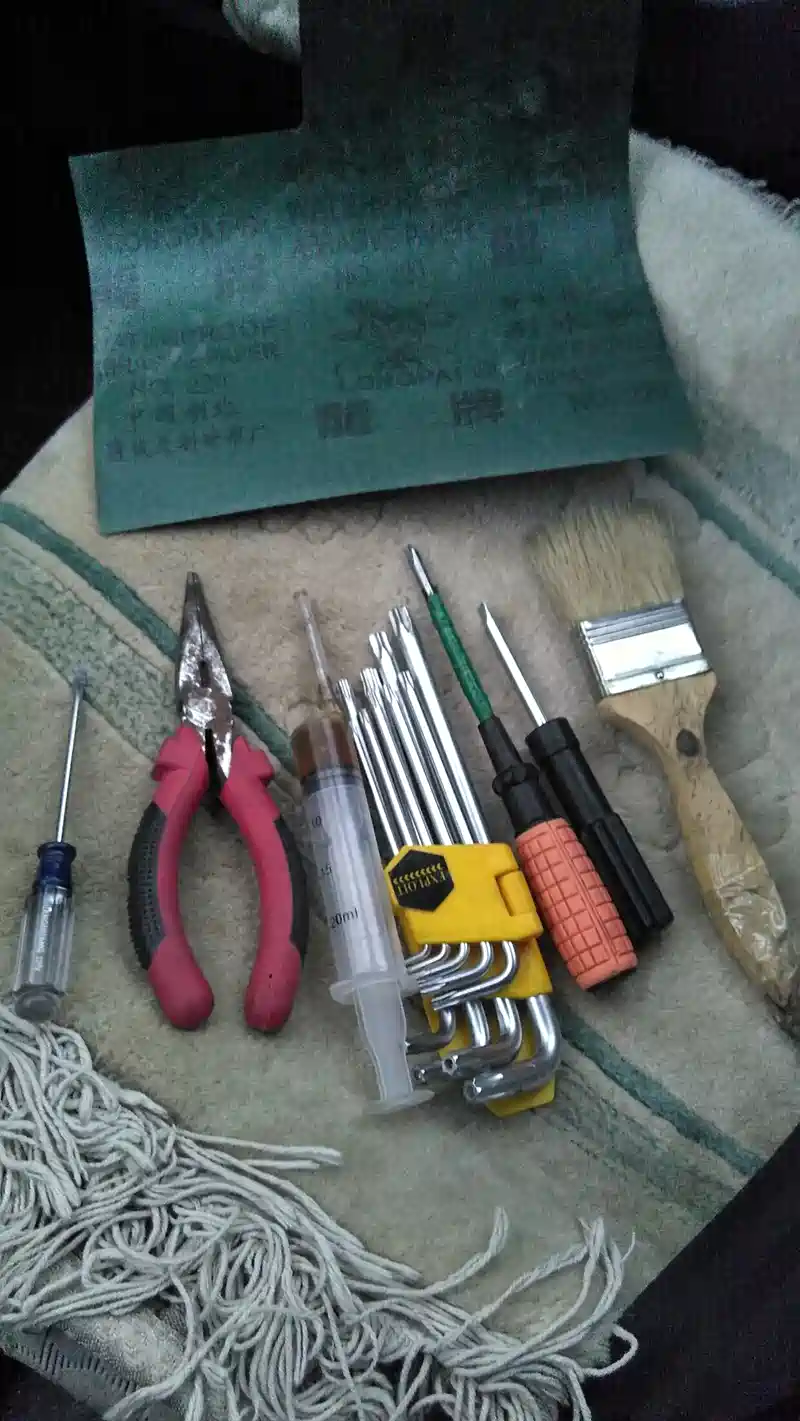 ,梅花内六方扳手,两个改锥,毛刷,细砂纸。