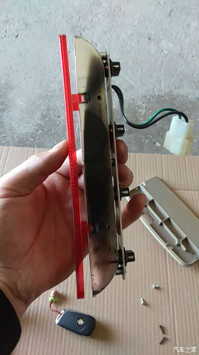 那么问题来了,装上LED灯泡后开大灯时,高位刹车灯亮一半。踩刹车时全亮,原车的卤素灯不是这样啊。