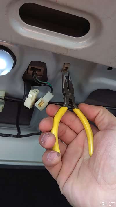 后备箱灯旁边有个插头,这个就是高位刹车的插头
